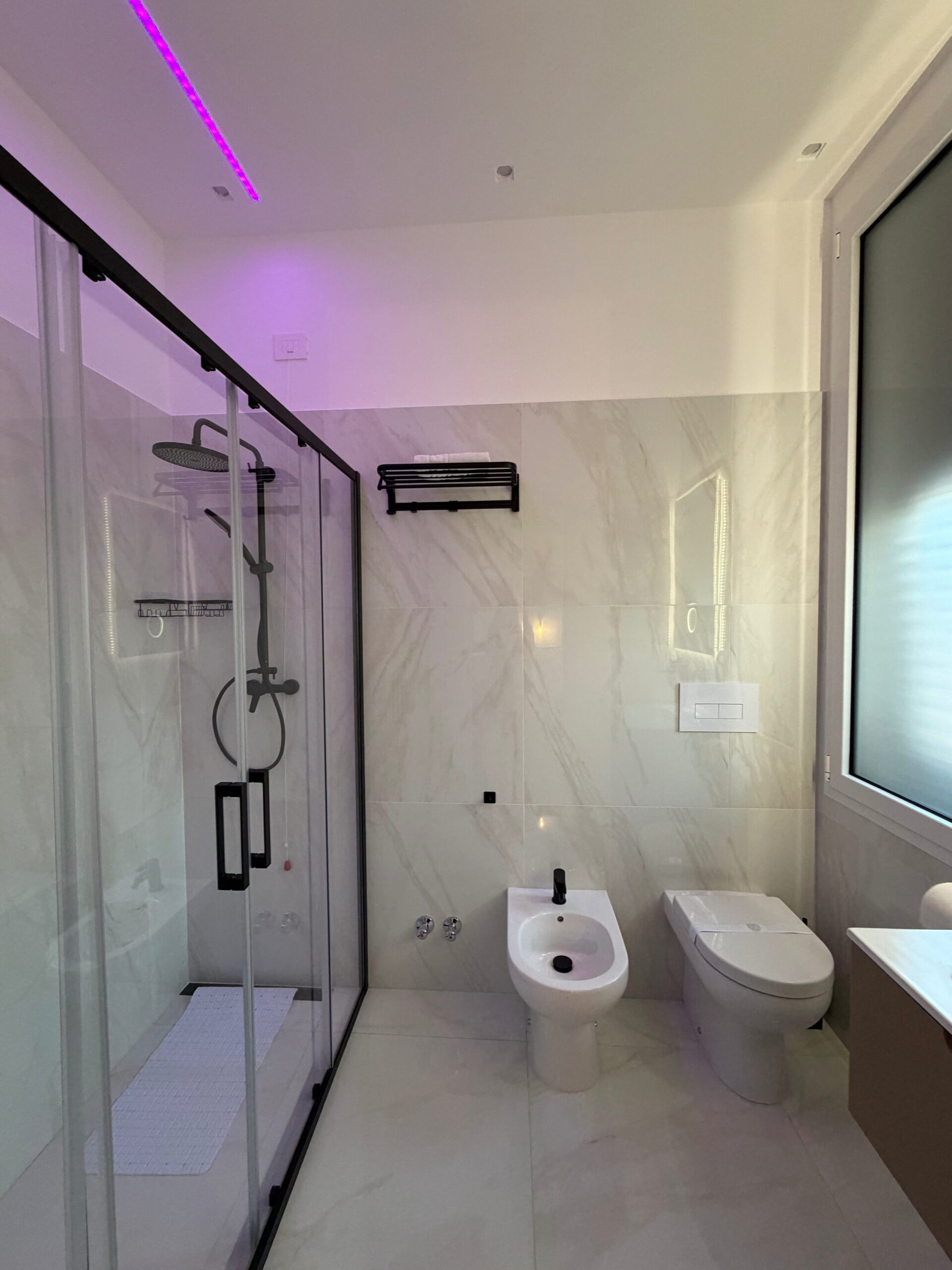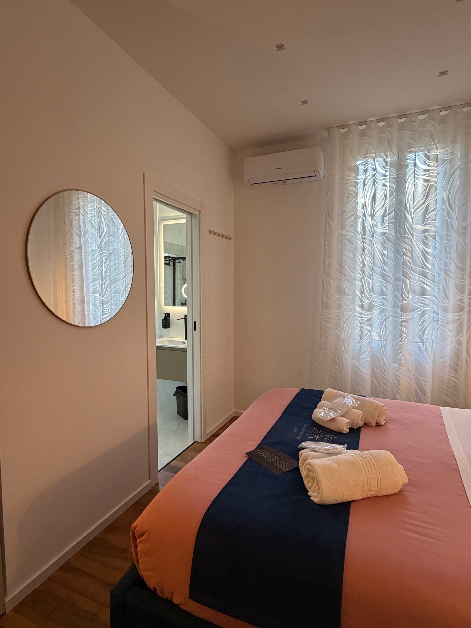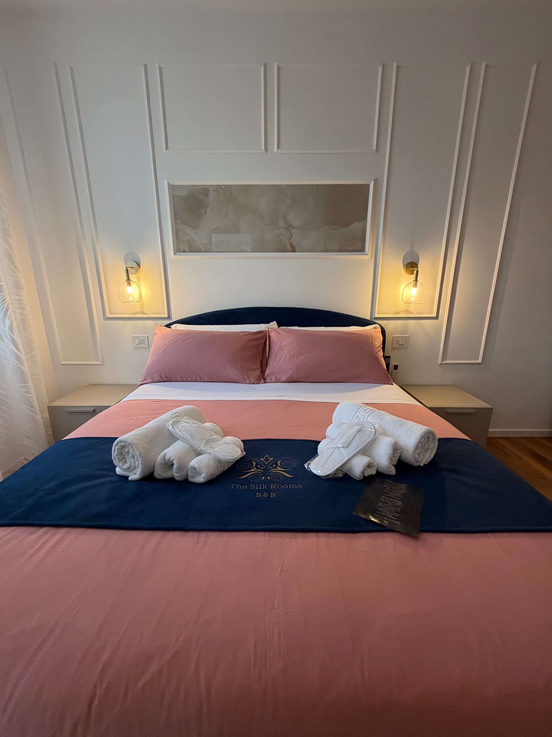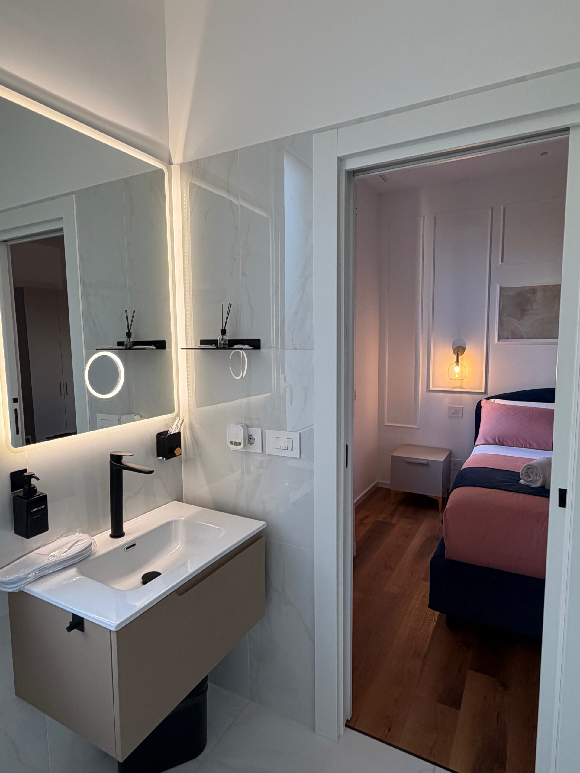 La nostra suite nel centro di Reggio Calabria: 23 mq di design ispirato alla seta, luce naturale, privacy e comfort premium, con doccia extra large idromassaggio e cromoterapia.