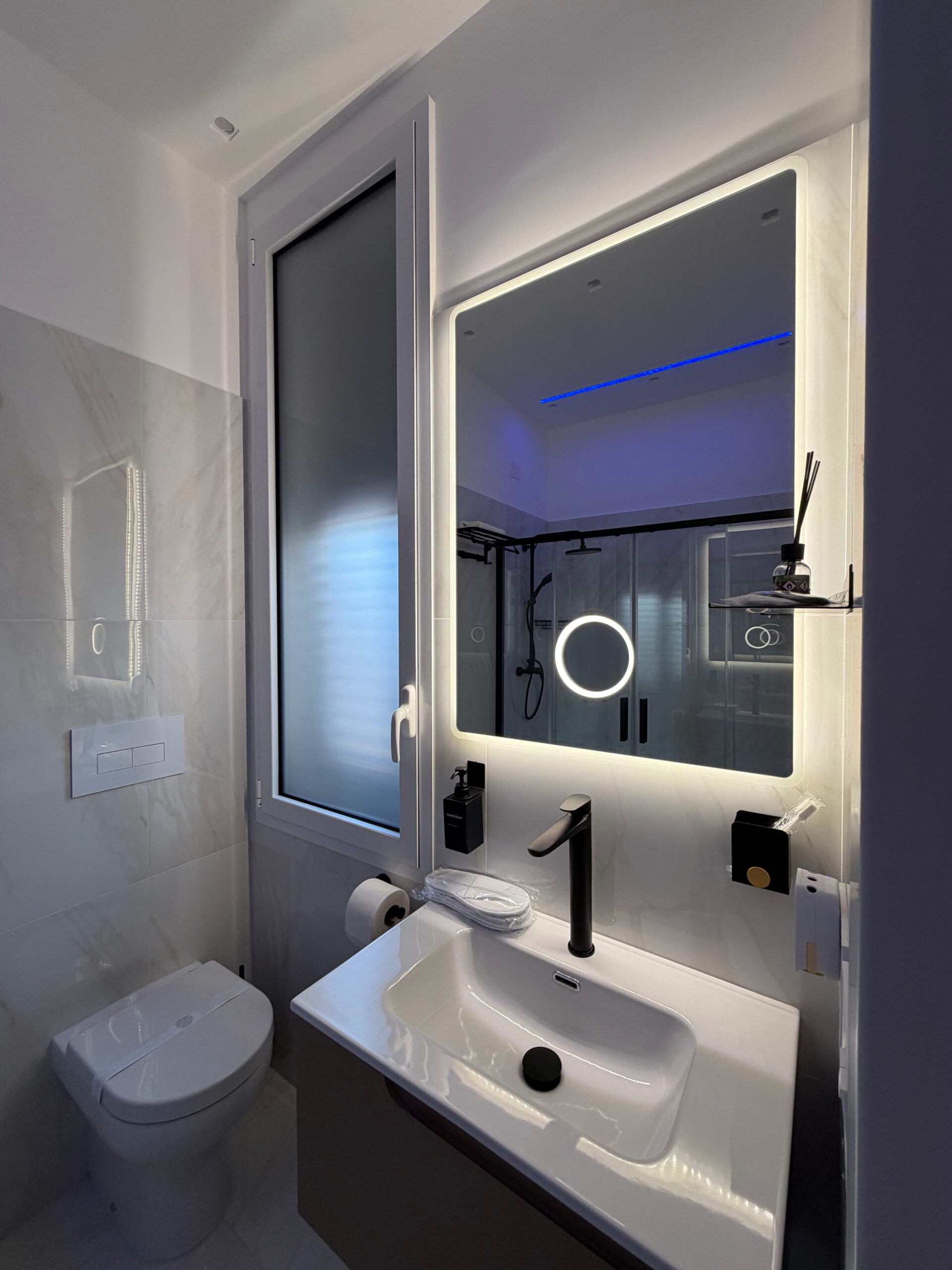 Bagno privato: doccia extra large, cromoterapia, phon, dispenser saponi, kit mono uso.