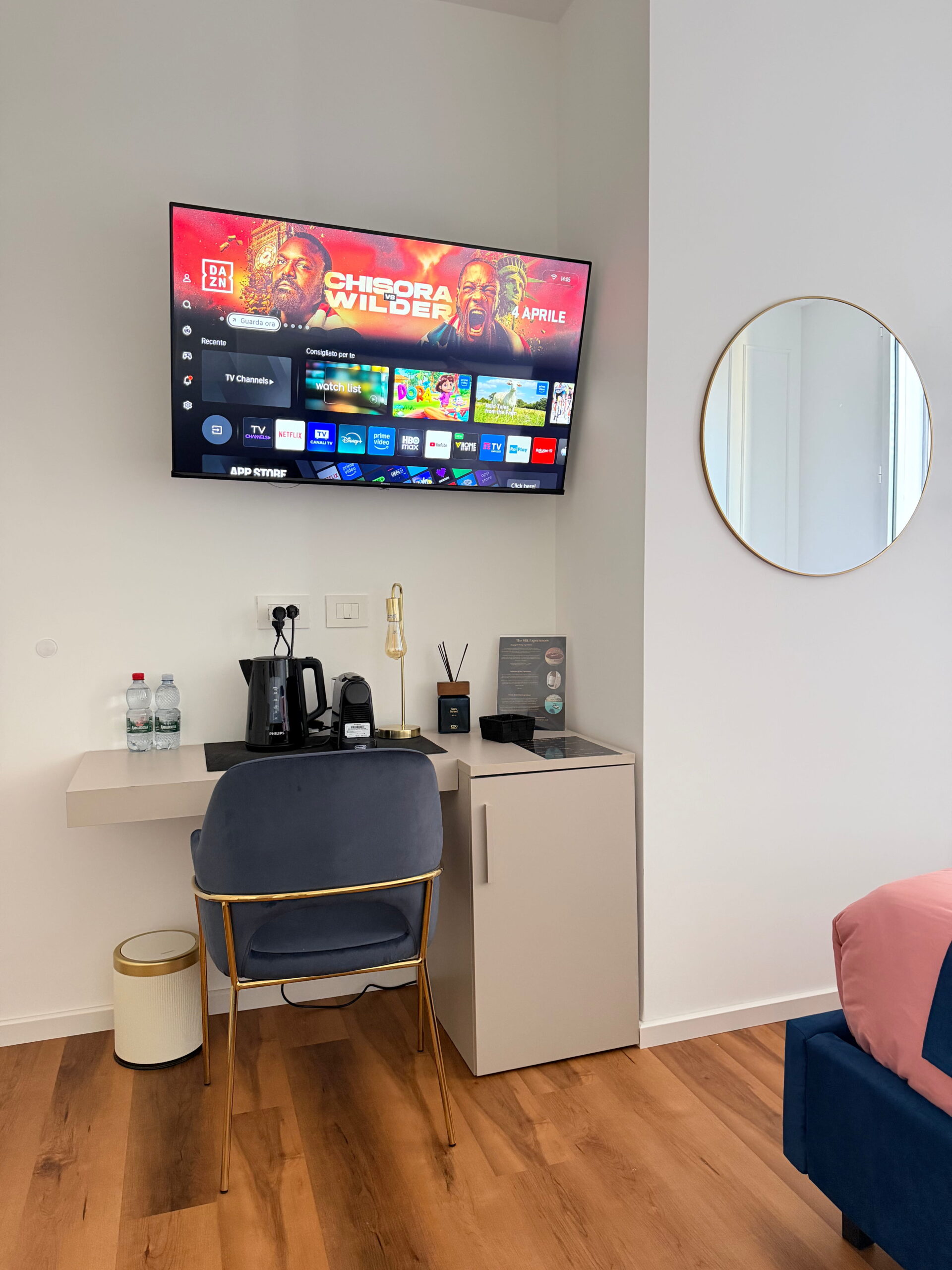 Dotazioni principali: Wi-Fi ad alta velocità, Smart TV 50”, scrivania, cassaforte, minibar, macchina Nespresso, bollitore, kit cortesia.